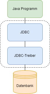 Es gibt jedoch Situationen, wo solche Frameworks nicht benutzt werden können oder man muss bestimmte Aktivitäten, welche diese Frameworks out-of-the-box anbieten, anders gestalten. In solchen Situationen kann die JDBC-Bibliothek von Java verwendet werden.